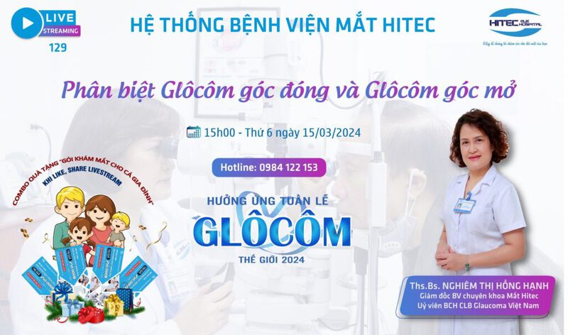 Đón xem livestream số 129 tuần này lúc 15h00 ngày 15/03/2024 trên fanpage của Hệ thống Bệnh Viện Mắt Hitec để được cung cấp thông tin đầy đủ về bệnh Glôcôm.