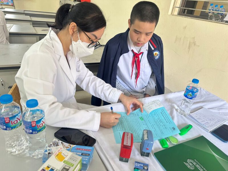 Trường THCS Hoàng Hoa Thám kết hợp với Bệnh viện Mắt Kĩ Thuật Cao Hà Nội tiến hành khám mắt cho học sinh