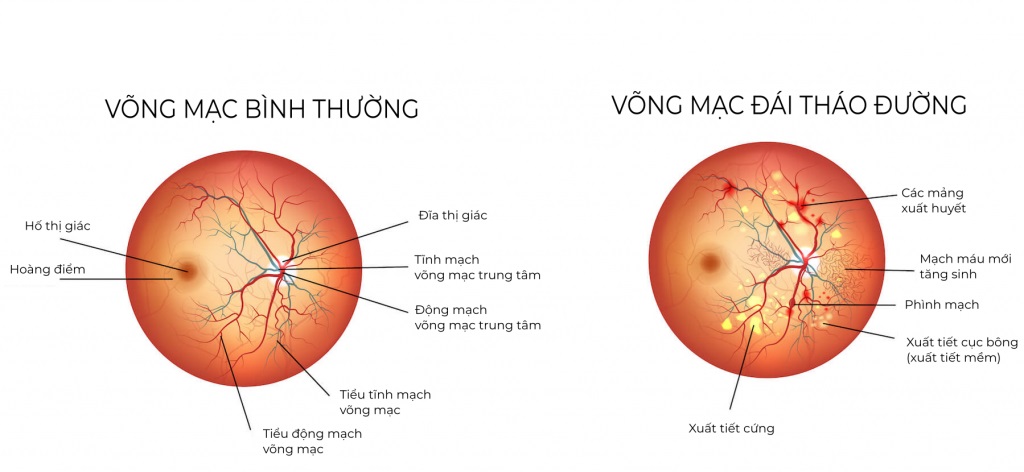 Võng mạc là bộ phận cảm thụ ánh sáng, trong đó hoàng điểm là trung tâm của võng mạc, nơi cho thị lực tinh tế nhất. Ảnh hưởng của bệnh đái tháo đường trên võng mạc làm cho võng mạc bị tổn thương nặng, ảnh hưởng trầm trọng tới chức năng thị giác.