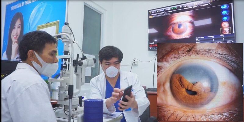 Đến nay, đã gần 3 tháng sau chấn thương, khi mắt mờ rất nhiều bệnh nhân mới đến Bệnh viện Mắt kỹ thuật cao Hà Nội (cơ sở 51-53-55 Trần Nhân Tông, Hà Nội) trong tình trạng mắt trái nhìn ngoài khá yên ả, không sưng nề, không đau nhức, chói cộm nhưng không còn nhìn rõ được hàng chữ to nhất trên bảng thử thị lực… Bệnh nhân được chẩn đoán: mắt trái đứt chân mống mắt rộng trên ½ chu vi, đục nhân mắt hoàn toàn.