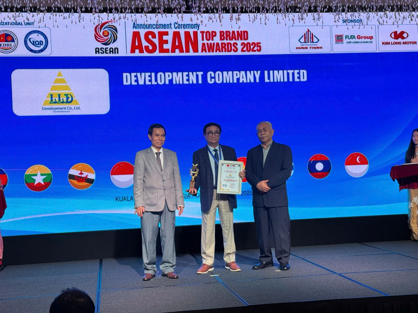 Tại Lễ trao giải ASEAN Top Brands Award 2025 diễn ra tại Kuala Lumpur (Malaysia), Công ty TNHH Phát triển vinh dự được mời tham dự với vai trò đại diện tiêu biểu trong lĩnh vực y tế khu vực ASEAN.