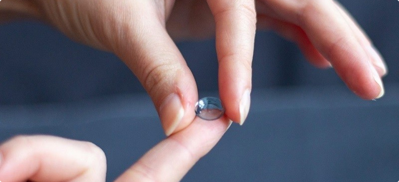 - Để kính tiếp xúc trên đầu ngón trỏ của bàn tay phải (tay thuận), nhỏ 1 giọt nước mắt nhân tạo vào lòng kính tiếp xúc.