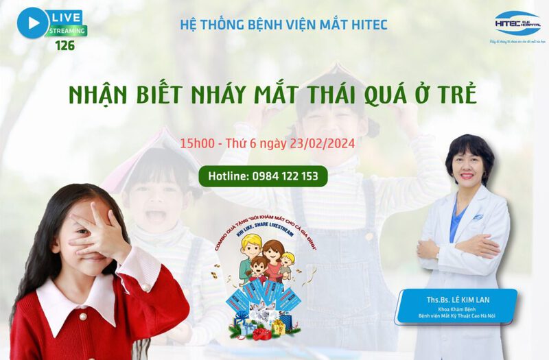 Đón xem livestream số 126 lúc 15h00 ngày 23/02/2024 trên fanpage của Hệ thốn Bệnh viện Mắt Hitec để biết thêm thông tin chi tiết về triệu chứng nháy mắt.
