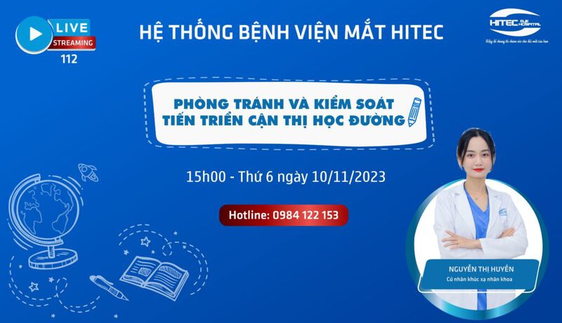 Đón xem livestream số 112 lúc 15h00 ngày 10/11/2023 trên fanpage của Bệnh viện Mắt Kỹ Thuật Cao Hà Nội để biết thêm thông tin chi tiết về cận thị học đường.