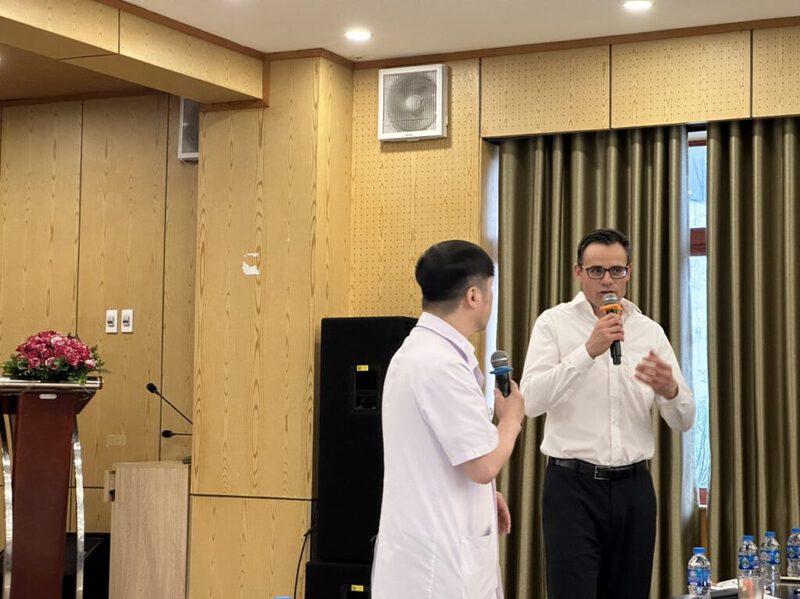Ông Oliver Schulze - chuyên gia của hãng TELEON đến từ Đức trao đổi với đội ngũ bác sĩ nhãn khoa Việt nam